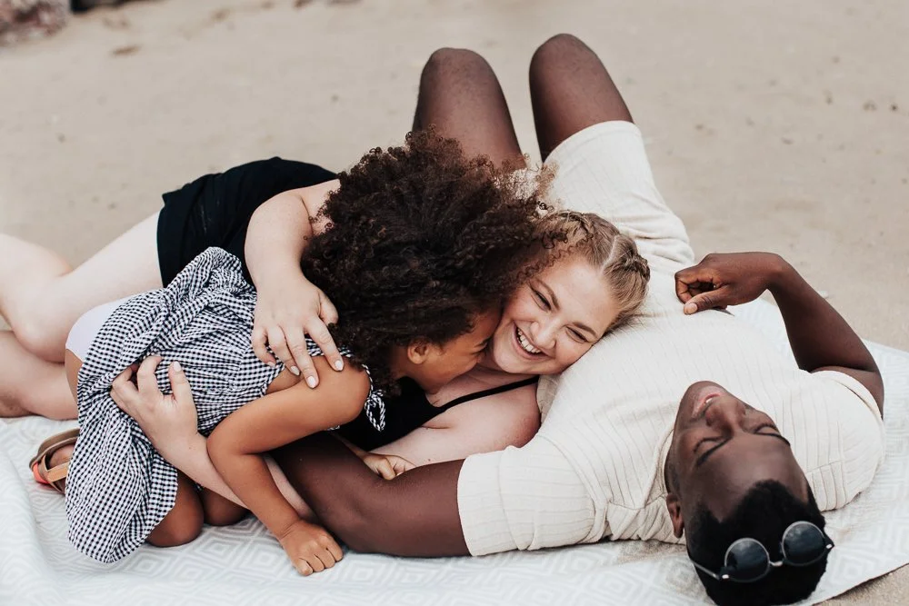 Have the family lie on the ground or a blanket with the kids “piling on” top of one parent or both. This creates playful, joyful energy.