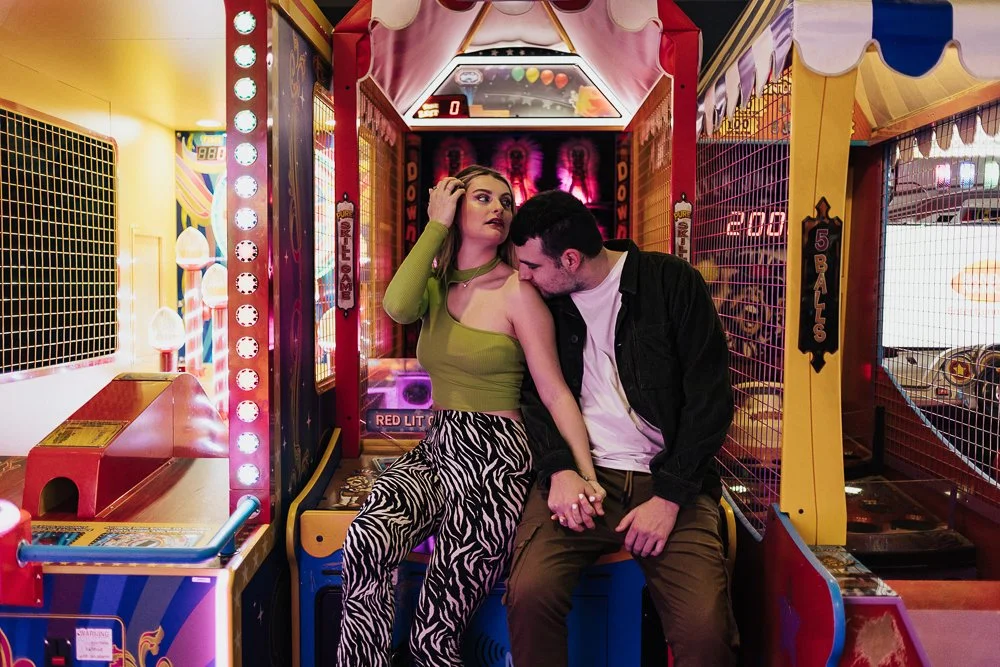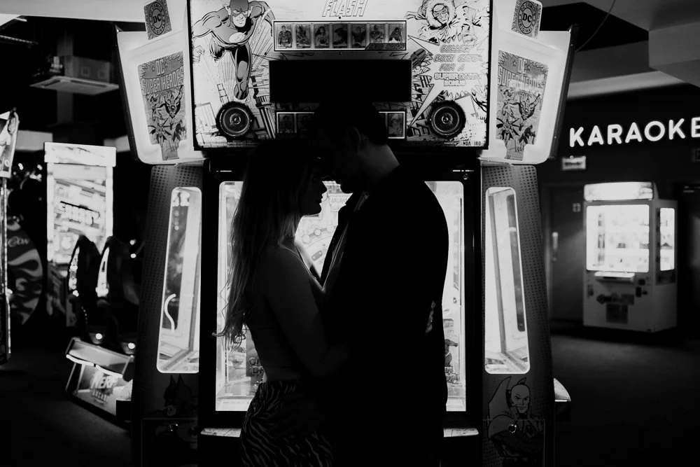 Arcade Las Vegas Style Engagement Couples photo shoot