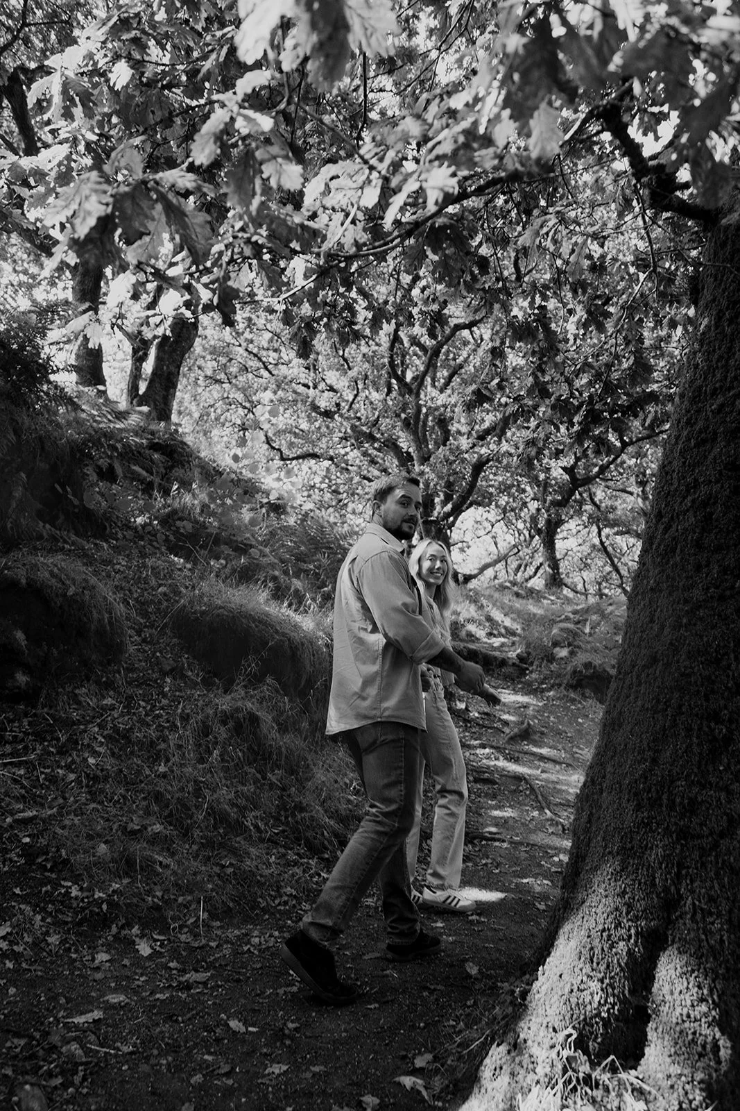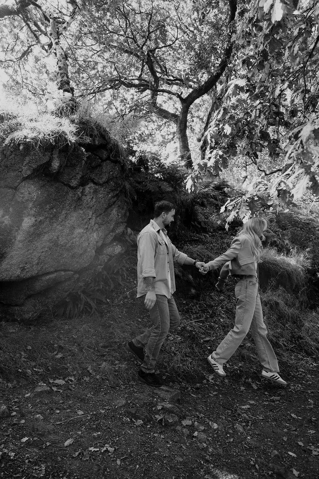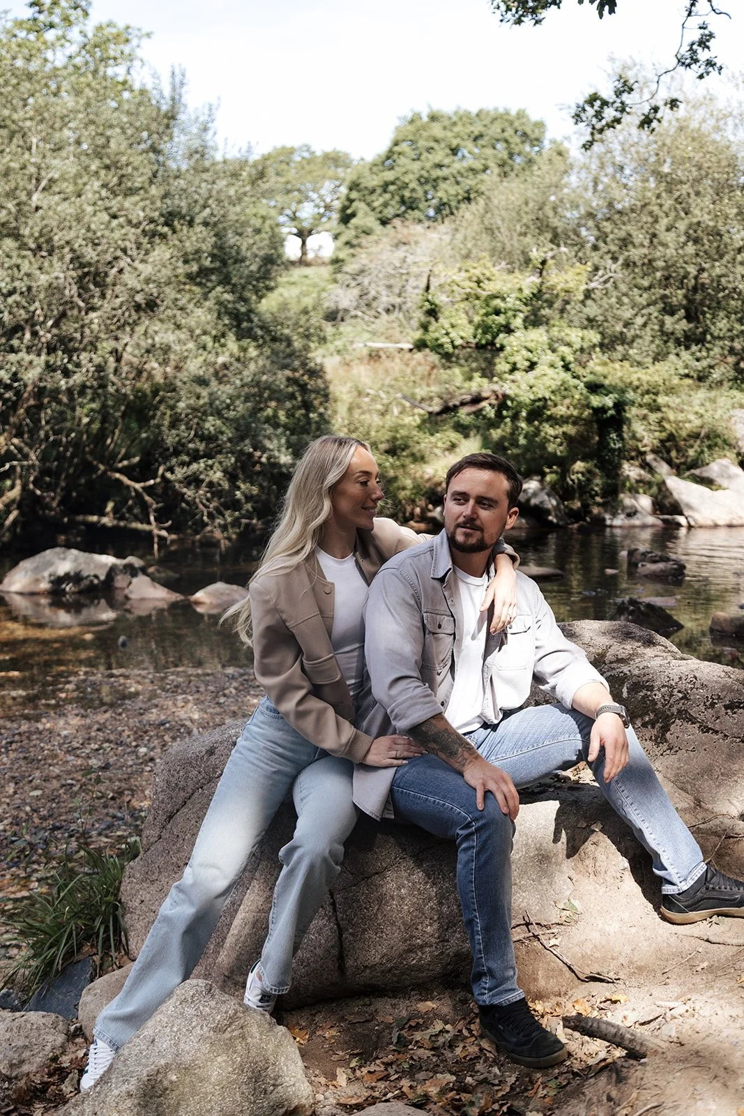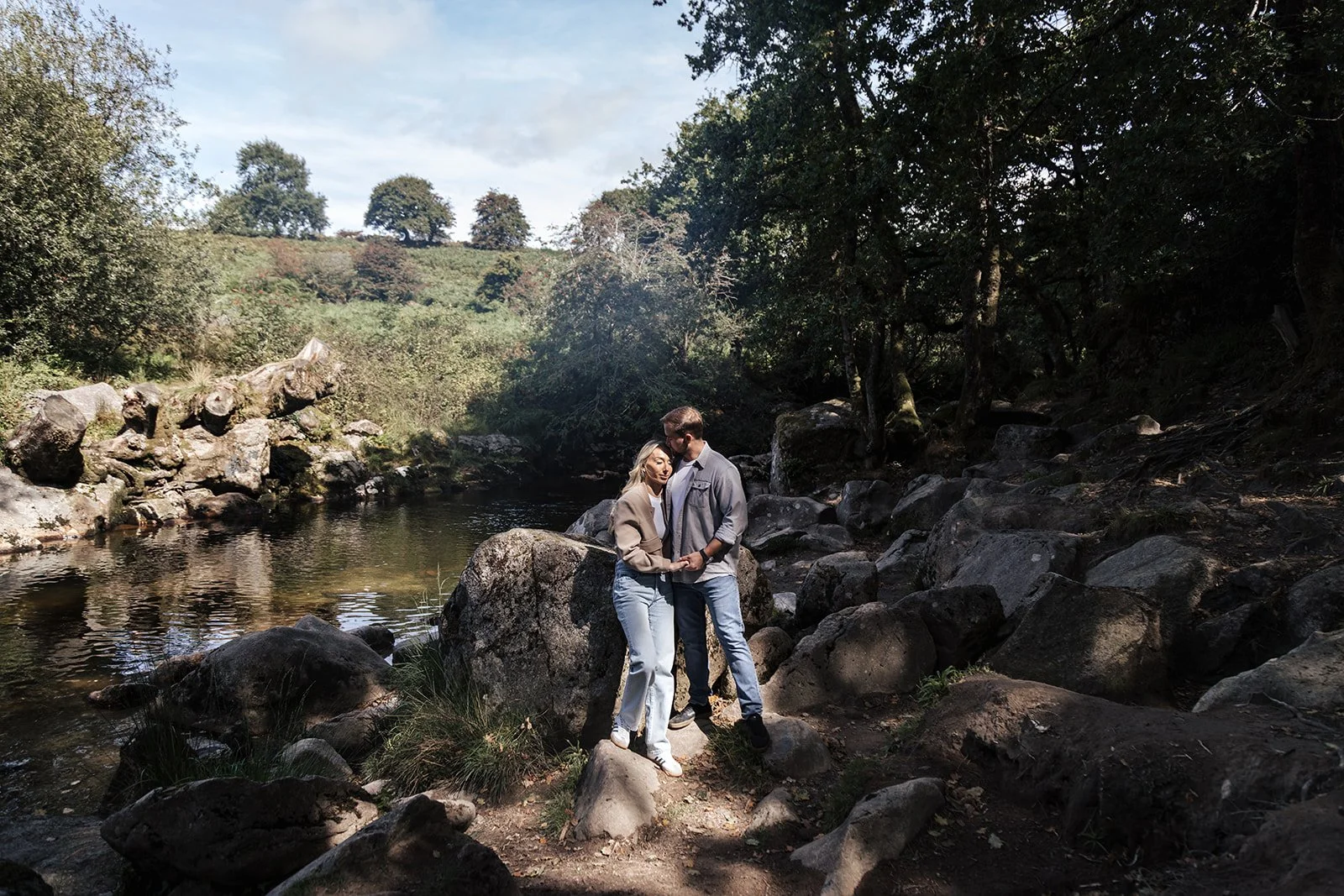 Cadover is a location I come back to time and time again for shoots, and for good reason. It has such a variety of backdrops within just a short walk – beautiful woodland trails, wide open moorland, and quiet riverside spots. It means you don’t need to plan too much in advance; we can simply wander, chat, and stop whenever the light or scenery feels right. That natural flow makes the session feel less like a photoshoot and more like spending time together outdoors. We explored the woods, found little pockets of golden light, and captured moments that felt natural and true to them.