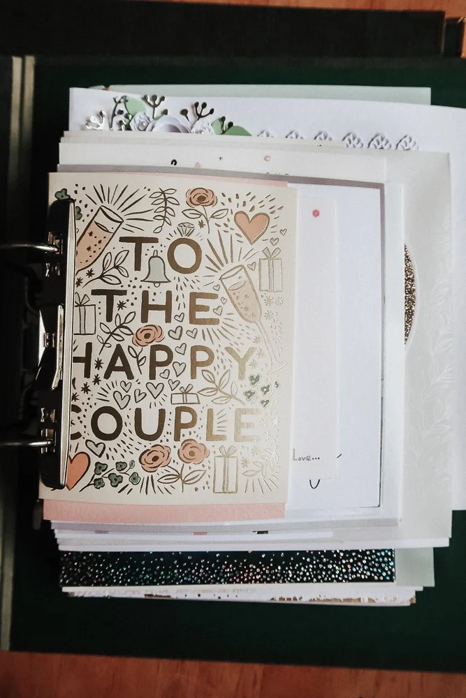 Place all your cards in one book or folder. For a book you can have it bound professionally or place them in a personalised folder, which is what I did! I purchased mine from here: Harris & Jones