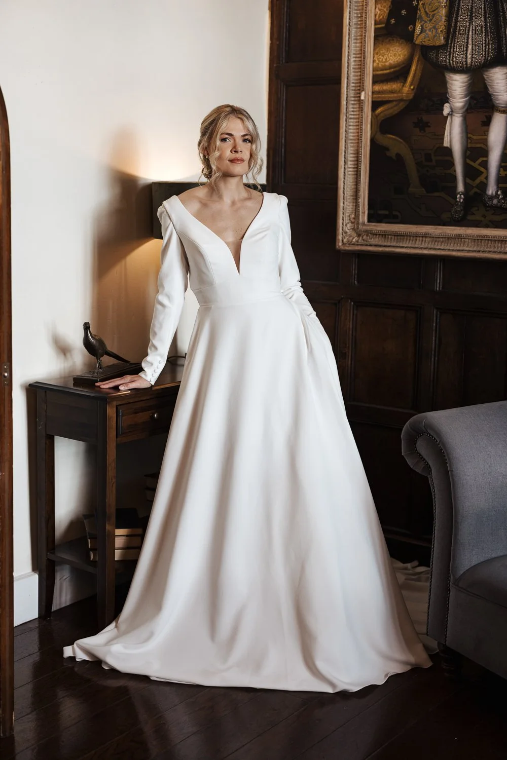 Set at the stunning Boringdon Hall in Plymouth, our goal was to showcase modern bridal wear and timeless photography in a way that celebrates the beauty of the bride’s special day. The historic charm and newly added modern aspects of their wellness rooms of Boringdon Hall provided the perfect backdrop for the concept: creative, elegant, and everlasting bridal portraits.