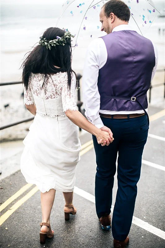 More often than not, even if it rains on your wedding day, it won’t rain the whole day and you can still get those lovely outdoor photographs that you were planning on. As a photographer on a rainy wedding day I always keep an eye on the weather so we can nip outside for your couple shots between showers, if I know that’s what’s important to you. Even if it is a bit drizzly, we can find an outdoor location with some cover to have your photos taken under, ensuring you stay dry.
