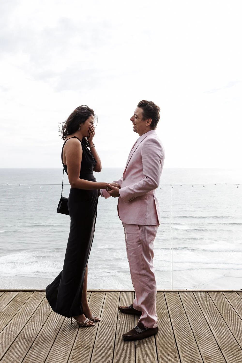 On a warm summer evening, the couple stepped out onto their balcony, and with the sun slowly setting behind them, a surprise proposal took place - It was such a delight to capture their emotions in that moment!