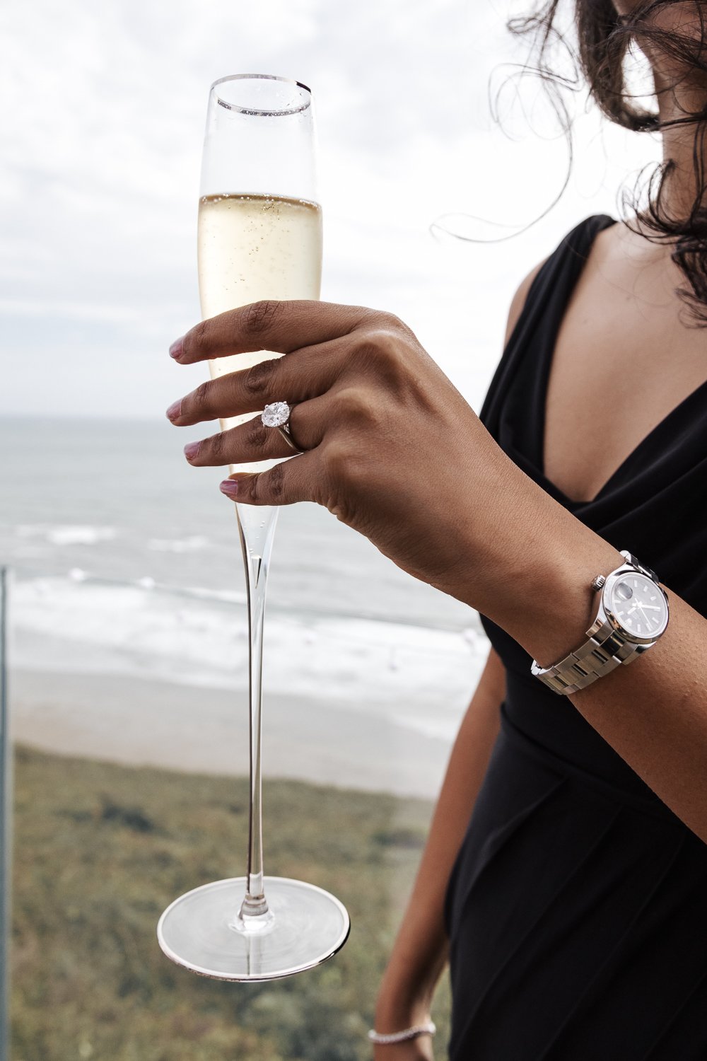 After she said "YES!", the couple were welcomed with canapés and champagne, toasting to their joyous occasion. I took some lovely photos of them together, capturing all of the love and excitement that they were feeling as they shared the news with some loved ones.