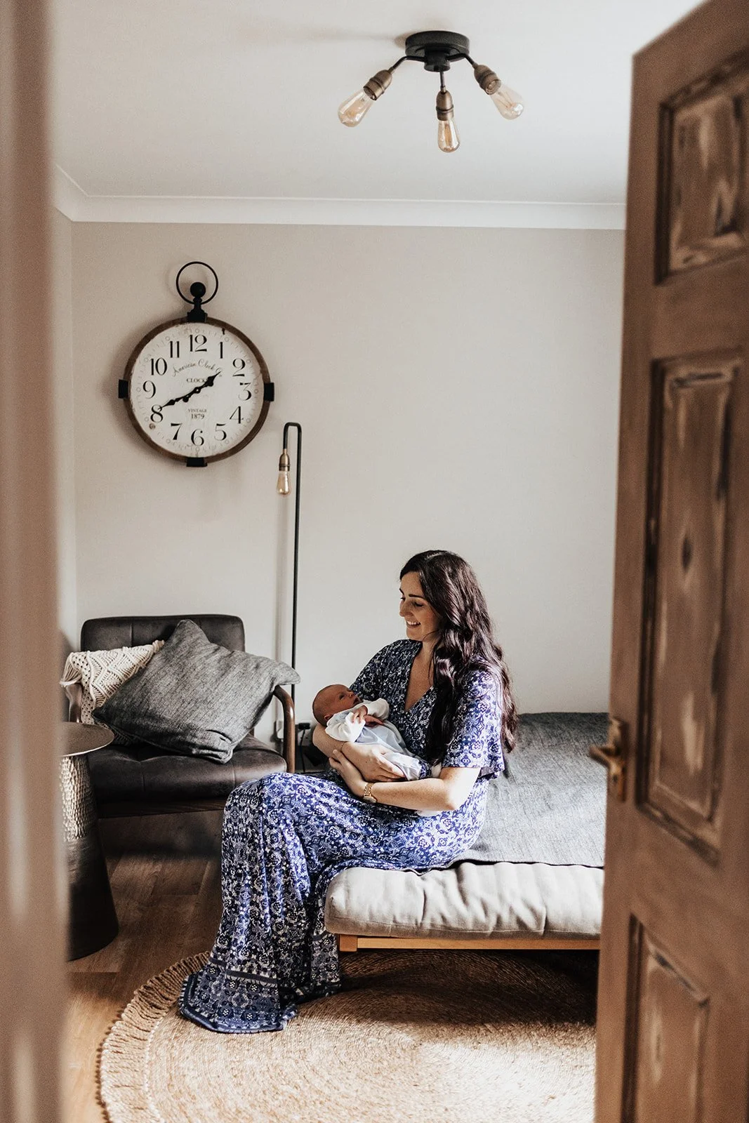 There's nothing worse than feeling stressed and uncomfortable during a photoshoot, especially when you have a newborn. One of the benefits of doing an at-home shoot is that you're in your natural environment. So, keep it easy and relaxed, and let your photographer capture you and your baby in a way that feels natural and authentic.